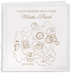 Album na zdjęcia z grawerunkiem dla pary Oni uwielbiają podróże, małe i duże? Nie wiesz, co kupić dla pary na parapetówkę ? A może wciąż nie masz upominku dla rodziców na złote gody ? Grawerowany album na zdjęcia to doskonały pomysł na prezent dla bliskiej osoby. Jest wykonany z materiałów najwyższej jakości. Dzięki temu może stać się ponadczasową pamiątką i niepowtarzalną oprawą dla tych najwspanialszych wspomnień. Wybierz projekt nadruku i zmodyfikuj go, tworząc spersonalizowany album dla niej , dla niego , dla dziecka lub dla pary na niezwykłą okazję . rozmiar albumu - 21 cm x 22 cm rozmiar kart wewnątrz albumu - 20 cm x 21 cm maksymalny format zdjęcia - 10 cm x 15 cm twarda oprawa otulona gładką, białą ekoskórą staranne przeszycia subtelnie karbowany grzbiet 50 dwustronnych kart umożliwiających umieszczenie w kieszeniach czterech zdjęć (łącznie 200 zdjęć w formacie 10 cm x 15 cm ) ALB-SC-WH-CO2-015