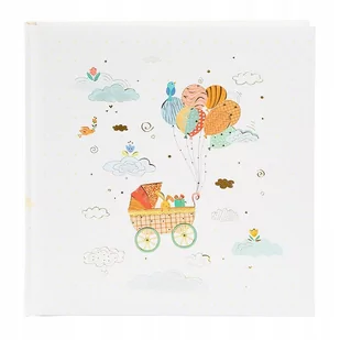 Album na zdjęcia wklejane 60 stron, na narodziny Dziecka Nowoczesny, tradycyjny dziecięcy album na dowolne zdjęcie, posiadający 60 stron /30 kart/ w kolorze białym. W środku znajdują się białe, grube karty, poprzekładane pergaminem. Okładka biała z kolorowymi zdobieniami w postaci dziecięcego wózeczka, baloników oraz chmurek. Album posiada cztery ilustrowane strony początkowe na opis najważniejszych wydarzeń w życiu dziecka. Wymiary albumu: