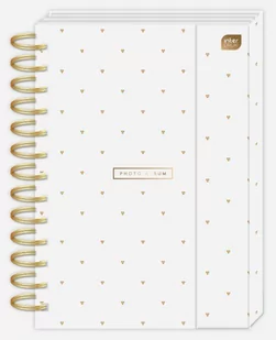 Format: B5. Album na zdjęcia z zamknięciem magnetycznym. Twarda okładka na podwójnej spirali z metalizowanymi elementami. W środku 25 kart na zdjęcia i kieszonka na zdjęcia lub płytę.