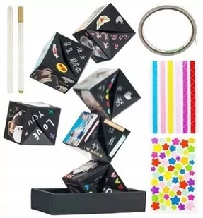 ✨ KOSTKI NA ZDJĘCIA 3D - DIY EXPLODING BOX Jump Box to świetna alternatywa w porównaniu do zwykłych albumów ze zdjęciami. Samodzielnie zrób coś niesamowitego czego nie spodziewa się nikt! ✔️ PAKIET ZAWIERA: 6 kostek na zdjęcia pudełko na kostki dwa metaliczne długopisy (srebrny i złoty) rolkę dwustronnej taśmy klejącej 6 gumek do złożenia kostek oraz instrukcję