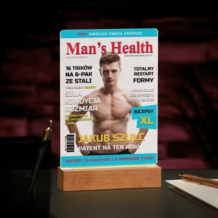 Lampka ramka L z wydrukiem Man''s Health na szkle akrylowym i podświetleniem LED dla kulturysty sportowca trenera