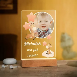 Lampka ramka L z wydrukiem na szkle akrylowym i podświetleniem LED dla chłopca na roczek