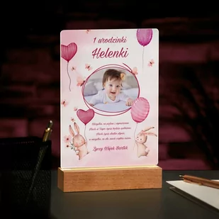 Lampka ramka L z wydrukiem na szkle akrylowym i podświetleniem LED dla dziewczynki na roczek