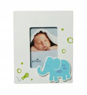 Dziecięca małą ramka na zdjęcie o wymiarach 5 x 8 cm renomowanej niemieckiej firmy Goldbuch. Ramka z motywem niebieskiego słonika w prawym dolnym rogu. Wysokiej jakości wykonanie z MDF. Idealna na prezent. Całkowite wymiary ramki to: