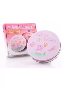 Zestaw składa się z ozdobnej puszki, w której umieszczona jest kolorowa masa gipsowa. Została ona tak przygotowana, aby było można w bardzo łatwy i szybki sposób przygotować ją do użycia, całkowicie samodzielnie. Wystarczy tylko wymieszać różową lub niebieską masę z zalecaną ilością wody, przełożyć do ozdobnej puszki, a następnie odczekać chwilę, aż zacznie tężeć. W tym momencie można już odcisnąć rączkę lub stopę Malucha oraz na spodzie wieczka wypełnić metryczkę, która zawiera miejsce na wpisanie imienia, wieku dziecka oraz datę zrobienia odcisku. Każdy z zestawów zawiera szczegółową instrukcję obsługi, dzięki czemu wykonanie masy do odcisku nie będzie stanowiło żadnego problemu. Wykonanie pamiątkowego odcisku rączki lub stopy Malucha z pewnością będzie doskonałą zabawą dla całej rodziny. Nasz ,,Odcisk Bobasa" to pomysł na świetną zabawę.