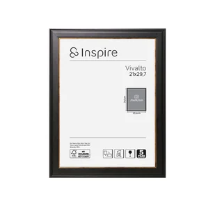 Rama na zdjęcie Vivalto 21 x 29. 7 cm czarno-złota Inspire. Prosta czarna ramka na zdjęcia w delikatny sposób podkreśli ulotne chwile złapane na fotografii, wydobywając piękno zdjęcia. Prosty design sprawia, że jest to uniwersalny produkt, który będzie dobrze wyglądał w każdym wnętrzu. Czarny matowy kolor podkreśla delikatne obramowanie w złotym kolorze.