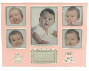 - Szczegółowe Akcenty: W dolnym rogu znajduje się mały srebrny miś, a obok niego wózek dziecięcy, dodające ramce dziecięcego charakteru.