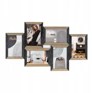 Ramka galeria na 6 zdjęć 10x15 Vercelli Black ZEP Ramka galeria na 6 zdjęć 10x15 czarno-brązowa, Vercelli Galeria na sześć zdjęć. Przeznaczona na 6 zdjęć formatu 10x15: dwa w poziomie i cztery w pionie. Wykonana z MDF, stylizowana na naturalne drewno w kolorze jasnego brązu oraz czerni. Wymiary galerii to 54x33 cm.