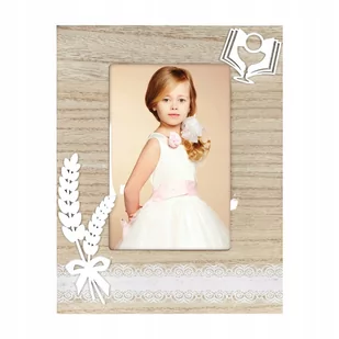 Komunijna ramka na zdjęcie 10x15, naturalna Doskonała pamiątka I Komunii Świętej. Uniwersalny kolor i wzór pozwoli na przechowywanie zdjęć i chłopca i dziewczynki. Drewniana ramka do postawienia na szafeczce przeznaczona jest do zdjęcia w formacie 10x15 cm. Detale 3D w postaci kłosów zboża czy kielicha w rogach nadają ramce wyjątkowości. Ramka do postawienia w pionie.