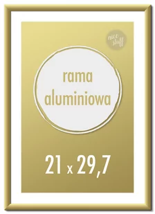 Rama aluminiowa A4 21x29,7 cm Kolor: złoty Wykończenie: matowe Wymiary wewnętrzne ramy: 21 cm x 29,7 cm Wymiary zewnętrzne ramy: 22,8 cm x 31,5 cm Wymiary profilu: