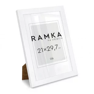 Ramka na zdjęcia 21x29,7 cm z podpórką Biała Eleganckie ramki do oprawy plakatów, zdjęć i rysunków. Wykonane z płyty pilśniowej, polistyrenu i lekkiej, przejrzystej pleksy 1 mm. Ramę można powiesić w pionie lub poziomie. Posiadają na plecach przymocowaną podpórkę, dzięki której można położyć oprawione zdjęcie na stojąco. Każdy egzemplarz jest zafoliowany.