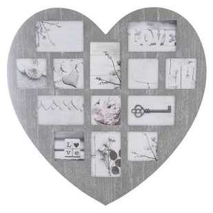 Ramka na zdjęcia drewniana SERCE - szara multirama do Twojego wnętrza Najważniejsze parametry: Kolor: szaryMateriał: drewnoPojemność: 12 zdjęć (6 zdjęć 10x15 cm i 6 zdjęć 10x10 cm)Styl: ponadczasowyMarka: