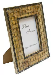 Ramka z drewna mangowego inkrustowana elementami metalowymi, wymiary: 13x18cm. Wymiary zewnętrzne ramki: 28 x 22,5 cm