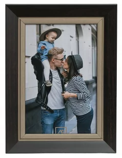 Wykonana z tworzywa rama z okleiną w kolorze ciemnobrązowym. Wokół zdjęcia wewnętrzny, cieniutki profil w kolorze mosiądzu. Pasuje do nowoczesnych jak i klasycznych wystrojów wnętrz.