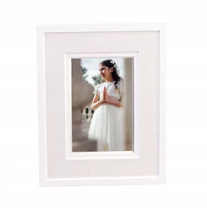 szklana Do postawienia w pionie i poziomie lub zawieszenia na ścianie. Rama zewnętrzna biała, wykonana z tworzywa. Otoczka zdjęcia w kolorze białym, o strukturze płótna. Niezwykła stylistyka pięknie eksponująca fotografię. Ramka idealna na zdjęcie ślubne, komunijne itp.