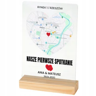 Prezent dla Niej/Niego na Walentynki, urodziny czy rocznicę! - ramka z mapą Ramka z waszą mapą oraz waszymi imionami, adresem i datą. Prezent ten będzie w każdej chwili przypominał wspaniałe chwile jakie przeżyliście. Specyfikacja: ✅Ramka: pleksi ✅Wymiary: 14,5 x 21cm ✅Podstawka:
