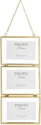 Ramka na zdjęcie zdjęcia metalowa złota na 3 zdjęcia 64x20x1,5 173514 Rozmiar: 64x20x1,5 Kolor: złoty Materiał: metal, szkło