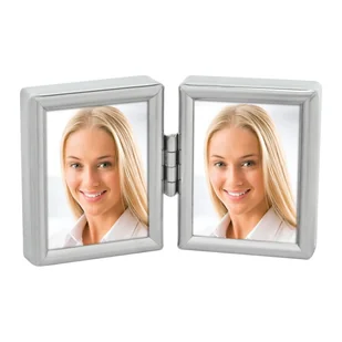 Ramka podwójna na zawiasach srebrna metalowa na dwa zdjęcia 3,5x4,5 cm