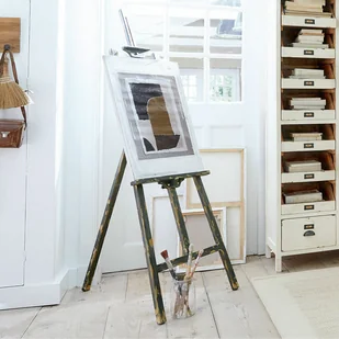 Kwiaty lub krajobrazy, abstrakcja lub realizm, swobodne lub bardziej wysublimowane kompozycje – oblicza malarstwa są niemal nieograniczone. Każdy obraz tworzy własną atmosferę w pomieszczeniu. Jednak efekt ten jest najbardziej imponujący, gdy obraz nie wisi na ścianie, ale – jakby właśnie został ukończony – wciąż stoi na sztaludze. Zwłaszcza gdy ma ona autentyczne antyczne wykończenie i wygląda jak ekscytujące znalezisko z pchlego targu. Dzięki tej sztaludze odkryjesz wyrafinowany pomysł dekoracyjny, który wniesie do Twojego wnętrza atmosferę ekscytującego życia artysty.