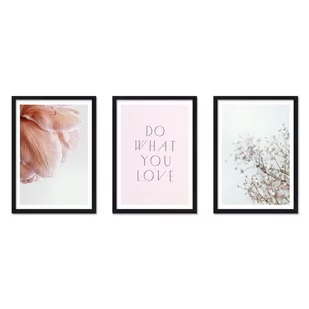 Zestaw czarnych ramek drewnianych - galeria ramek na 3 zdjęcia + szablon do powieszenia ram