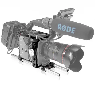 Klatka operatorska do kamery Sony FX6 z płytą bazową z mocowaniami prętów 15 mm rod. W zestawie znajdują się 2 pręty 15 mm rod o długości 12''. Całość została wykonana z solidnego i lekkiego aluminium obrabianego w technologii CNC.