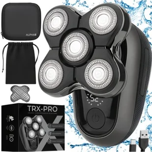 Golarka ALPHA Trx-Pro z magnetyczną głowicą łatwą w demontażu i czyszczeniu. Posiada 5 elastycznych ostrzy 360° dopasowujących się do kształtu głowy i twarzy, zapewniając równomierne golenie. Tryb Turbo Speed to dodatkowa moc przy gęstym lub twardym zaroście. Dzięki wodoodporności IPX7, możesz golić się pod prysznicem. Ładowanie USB-C jest szybkie i uniwersalne.