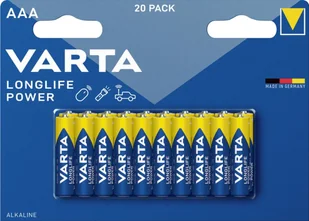 20x baterie LR03 AAA Baterie VARTA Longlife Power Micro AAA zostały opracowane specjalnie do urządzeń o wysokim zużyciu energii: zabawek, radioodbiorników, magnetofonów, bezprzewodowych myszy komputerowych itp. Dane techniczne: VARTA Typ: 04903 Rozmiar zgodny z IEC:
