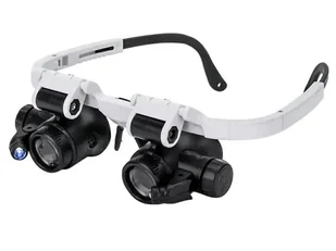 Zegarmistrzowskie okulary / szkła powiększające w zakresie x8 oraz x23. Wygodne okulary o wysokim współczynniku powiększania z wbudowanym podświetleniem LED....