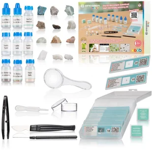 Ten wspaniały zestaw startowy pozwala odkryć świat mikrokosmosu za pomocą mikroskopu! Ponad 40 elementów pozwala szybko rozpocząć badanie i poznawanie mikrokosmosu. Zestaw zawiera 20 gotowych preparatów i 12 rzadkich kamieni z kodem QR. Zeskanuj ten kod QR za pomocą smartfona aby uzyskać więcej informacji o produkcie! Zestaw Experiment Set pozwala także na przygotowanie własnych preparatów i późniejszą ich obserwację pod mikroskopem. Zacznij swoją kolejną przygodę! Zawartość zestawu: utrwalone preparaty z kodem QR - 20 szt.