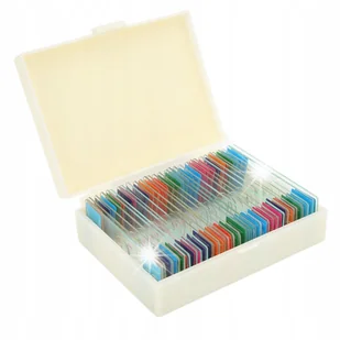 rośliny, owady, zwierzęta i kwiaty. Preparaty na plastikowych szkiełkach są w 100% bezpieczne dla dzieci. Procedura jest pokazana na rysunku: 1. umieścić preparat na blacie, trzymając mikroskop (bez uchwytu obiektywu) 2. mocno docisnąć szkiełko, włączyć podświetlenie LED, wyrównać szkiełko i wyregulować, obracając śrubę precyzyjnej regulacji i śrubę powiększenia, aż 3 komórki będą wyraźnie widoczne.