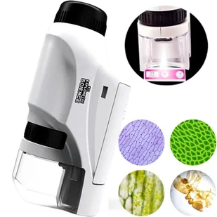 Mikroskop Kieszonkowy Przenośny Edukacyjny Prezent Dla Dzieci 60/120x Idealna zabawka edukacyjna dla młodych poszukiwaczy przygód i naukowców! Korzystając z mikroskopu, Twoje dziecko zagłębi się w mikroskopijny świat organizmów żywych i nieożywionych, zrozumie podstawowe zasady przedmiotów naukowych oraz poprawi swoje umiejętności myślenia i logicznego rozumowania! Cechy Mikroskop ułatwia badanie mikroskopijnego świata Doskonały punkt wyjścia do zrozumienia natury i poznania podstaw biologii. Mikroskop dla dzieci zapewnia powiększenie w zakresie od 60x do 120x Oświetlenie LED poprawia widoczność mikroskopu, umożliwiając lepszą obserwację Możliwość podłączenia do smartfona Dzięki smartfonowi masz możliwość robienia zdjęć. Wyjątkowe i szybkie ustawianie ostrości Idealna propozycja na prezent Użycie Aby zasilić mikroskop, włóż 2 baterie AAA (baterie nie są dołączone do zestawu). Obiekty można powiększać w zakresie od 60x do 120x, obracając pierścień na obiektywie. Podczas używania mikroskopu z telefonem: