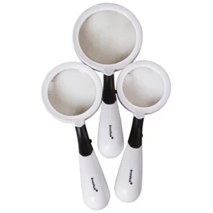 Levenhuk Zeno Multi ML13 to zestaw trzech lup ręcznych. Lupy mają różne stopnie powiększenia i średnice: można użyć przyrządu odpowiedniego do danego zadania. Niski stopień powiększenia i duża średnica doskonale nadają się do czytania, z kolei wysoki stopień powiększenia i mały obszar obserwacji przydają się do badania małych obiektów.