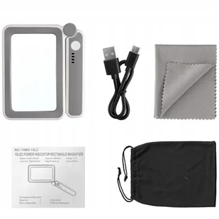 W zestawie: Lupa akumulatorowa kabel USB woreczek na lupę szmatka do czyszczenia ✔ Duża soczewka zapewnia komfortowe czytanie bez konieczności przesuwania rąk. ✔ Energooszczędne diody LED zmniejszają zmęczenie oczu. ✔ Lekka i poręczna konstrukcja sprawia, że możesz zabrać ją wszędzie.
