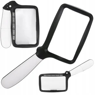 Lupa do czytania duża 3X światło LED składana rączka szkło powiększające 10863 Lupa do czytania z podświetleniem LED to idealne narzędzie do codziennego użytkowania. Może być używana do czytania oraz przez Jubilerów, Numizmatyków, Serwisantów elektroniki, itp Lupa z dużą soczewką posiada przybliżenie 3X oraz mocne ledowe podświetlenie 5 ledowych diod z dwoma trybami świecenia zapewni optymalne oświetlenie według potrzeb Lupa posiada dwa tryby świecenia 100% i 50% Zasilana 3x baterią AAA. (brak w komplecie) Ergonomiczny i wygodny uchwyt nie obciąża ręki nawet przy długotrwałym trzymaniu urządzenia, idealna szczególnie dla osób starszych i dzieci. Po złożeniu zajmuje mało miejsca, a w zestawie znajduje się eleganckie etui do którego możemy schować SPECYFIKACJA TECHNICZNA: Wykonana z wysokiej jakości materiałów Powiększenie:
