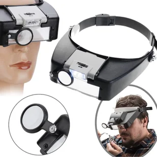 w gabinecie dentystycznym, u personelu kosmetycznego czy u jubilerów. Produkt może zostać doceniony również w codziennym użytkowaniu przy amatorskiej naprawie elektroniki, oglądaniu znaczków lub monet. ◉ [ SPECYFIKACJA ] Stan: Fabrycznie nowy Produkt: Opaska z lupą z podświetleniem LED Powiększenie: