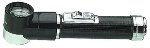 Lupa z wbudowanym podświetleniem. zasilanym na dwie baterie 1,5 V. Z tuleją akrylową, na której osadzona jest lupa. Dostarczana bez baterii.