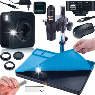 Kamera spełni oczekiwania nawet najbardziej wymagających użytkowników, umożliwiając precyzyjne i profesjonalne badania mikroskopowe. 3️⃣ Silikonowa mata 380x260 mm. Mata ta jest użytecznym dodatkiem, który zapewnia stabilną powierzchnię pracy dla mikroskopu. Jej silikonowa powierzchnia zapobiega ślizganiu się mikroskopu podczas obserwacji, co jest istotne dla utrzymania stabilności i precyzji. Ten zestaw oferuje kompleksowe narzędzia do prowadzenia zaawansowanych badań mikroskopowych, zarówno dla profesjonalistów, jak i amatorów nauki.