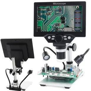 Profesjonalny mikroskop do naprawy elektroniki z kamerą i wyświetlaczem 7 cali HD LCD 1080p 1200x wraz z oświetleniem LED COB Mikroskop cyfrowy 1200 to wszechstronne narzędzie zaprojektowane dla profesjonalistów z różnych branż, takich jak elektronika, nauki przyrodnicze i jubilerstwo. Dzięki zaawansowanej technologii optycznej i łatwej obsłudze, umożliwia precyzyjne i wygodne obserwacje. Idealny do szerokiego zakresu zastosowań, oferuje niezawodność i wysoką jakość obrazu.