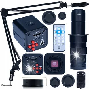 Zestaw Kamera mikroskopowa Norma Black PRO wraz z regulowanym wysięgnikiem i obiektywem 180X 3 w 1. ✳️ W zestawie znajdują się następujące elementy: 1️⃣ Kamera mikroskopowa Norma Black PRO KMNBP-HDMI