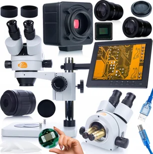 Mikroskop Rosfix ZESTAW MIKROSKOP TRINOKULAROWY MERCURY KAMERA 5MPIX UCHWYT WYŚWIETLACZ 8