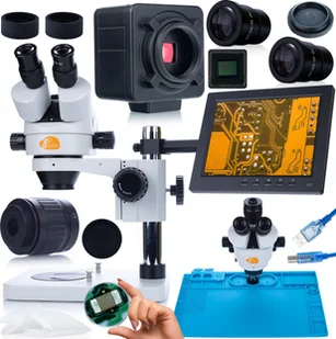 Rosfix Zestaw mikroskopowy Mercury Pro MSMP-T-PS1 +kamera Crux PRO KMCP-HDMI-USB+oświetlacz 56xLED+silikonowa mata 480x320mm+uchwyt z wyświetlaczem 8"