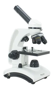 Mikroskop-Sagittarius-SCHOLAR 301, 40x-400x, śruba mikro-makro, zasilanie bateryjne i sieciowe Scholar 301 to kompaktowy, jeden z tańszych na rynku tej klasy, doskonale wyposażony mikroskop zarówno dla początkujących jak i zaawansowanych amatorów przygody z mikroświatem. Zasilanie bezprzewodowe przy pomocy baterii umieszczonych w podstawie zapewnia możliwość korzystania z mikroskopu w dowolnym miejscu. Mikroskop może być także zasilany z sieci poprzez zasilacz sieciowy. Dedykowany jest zarówno dla początkujących jak i zaawansowanych amatorów przygody z mikrobiologią. Trzy obiektywy w zestawieniu z okularem WF10 pozwalają uzyskać powiększenia od 40x do 400x.