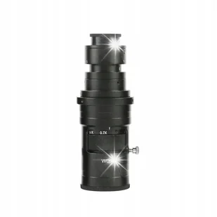 200x Odległość robocza: 90-97 mm Gwint montażowy kamery: C-Mount (25mm) Średnica pierścienia w celu montażu na uchwycie: 50mm Wysokość obiektywu: 135,5mm Optyka z płynnym powiększeniem