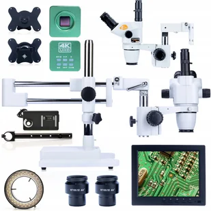 Rosfix Zestaw mikroskopowy premium: Scutum Green PRO KMSGP-HDMI-USB 4K 16MP kamera, Moon Pro MSMP-T-SDMS1-6745 mikroskop stereoskopowy na suwnicy, 8..