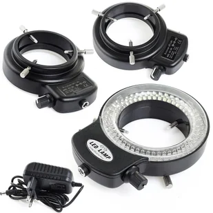 Regulowane oświetlenie 144x LED do mikroskopu 64mm Źródło światła mikroskopu z diodami LED ze ściemniaczem to regulowane natężeniem 144-LED światło pierścieniowe z potencjometrem do sterowania natężeniem. Jego wymiary montażowe wynoszą do 64 mm. Może zaoferować optymalną ilość światła do mikroskopu lub kamery, gdy wymagane są dodatkowe źródła światła. Lampa pierścieniowa zapewnia chłodne, równomierne, intensywne i skupione podświetlenie bez cieni. Jest idealnym, trwałym, chłodnym źródłem światła dla mikroskopów.
