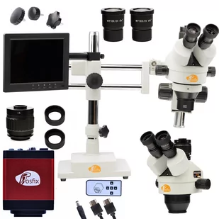 Mikroskop Rosfix MIKROSKOP STEREOSKOPOWY TRINOKULAROWY SUWNICA UCHWYT WYŚWIETLACZ KAMERA