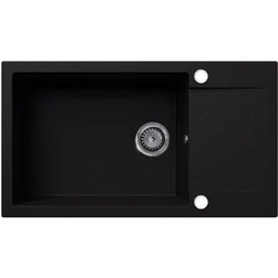 Zlewozmywak granitowy jednokomorowy FORT czarny brokat srebrny z ociekaczem