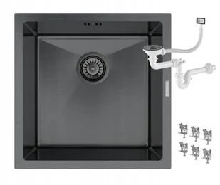 Granitan | Zlew stalowy – zlewozmywak 1-komorowy – 43,8 x 43,8 cm – kwadratowy – czarny – z syfonem – Bari