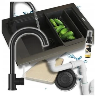 Zlew Granitowy Panama Ociekarka Kran Syfon Czarny Zestaw Syfon