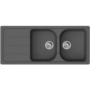Zlewozmywak dwukomorowy z ociekaczem HANSGROHE S52 43348290. Składa się ze zlewozmywak nablatowy, automatyczny komplet odpływowy z syfonem. Wymiary wycięcia: 1140 x 480 mm. Wykonany z SilicaTec.